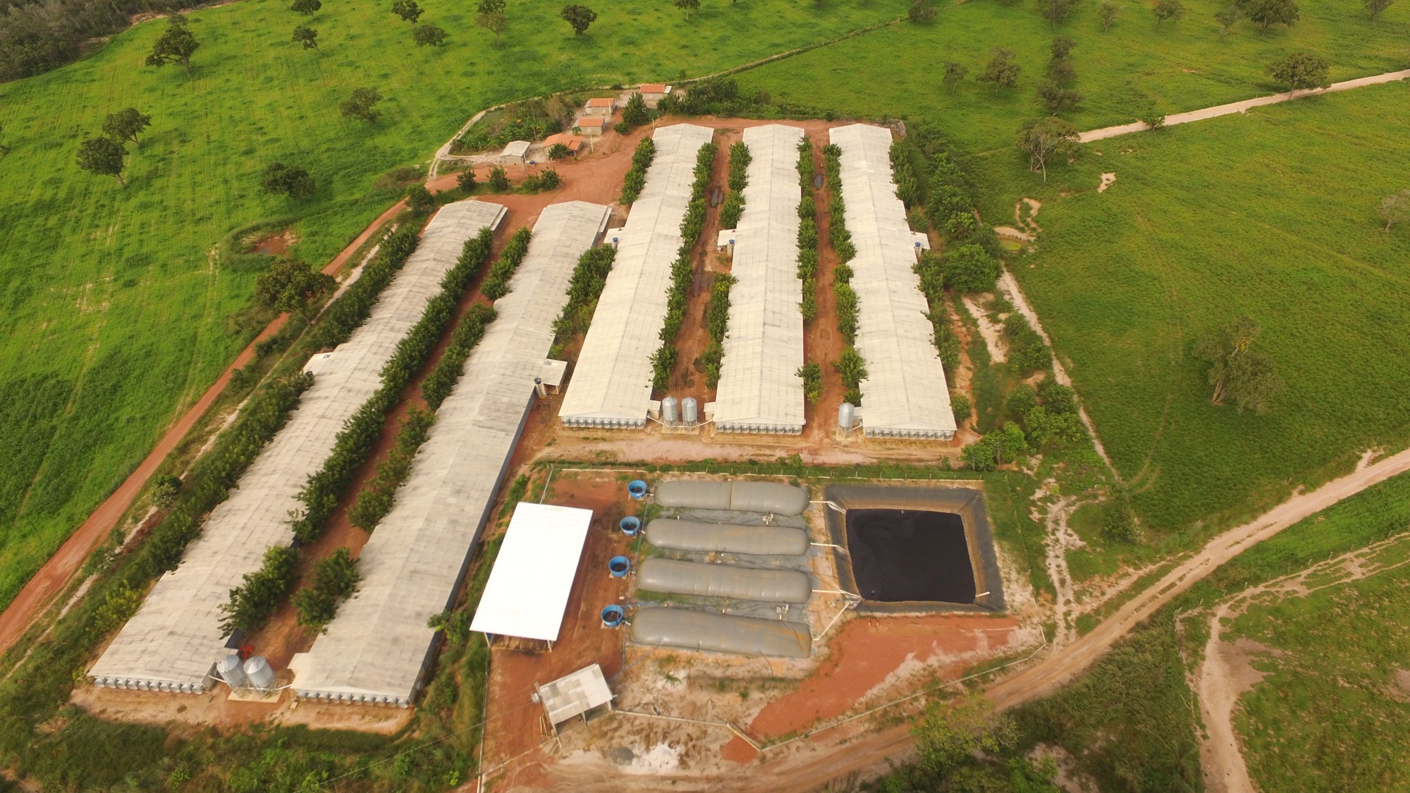 Granja 125 da Fazenda Bom Tempo - Sistema de Geração a Biogás de 85 kwp com Gerador MWM de 112 kVA que usa o Biogás da Cama de frango como combustível, com geração média mensal de 35.000 kWh (Granja com 175 mil frangos)